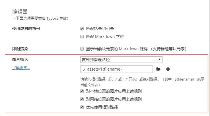 这里需要修改插入图片时的相对路径./_assets/${filename},使自动插入的图片路径满足我们的规则: