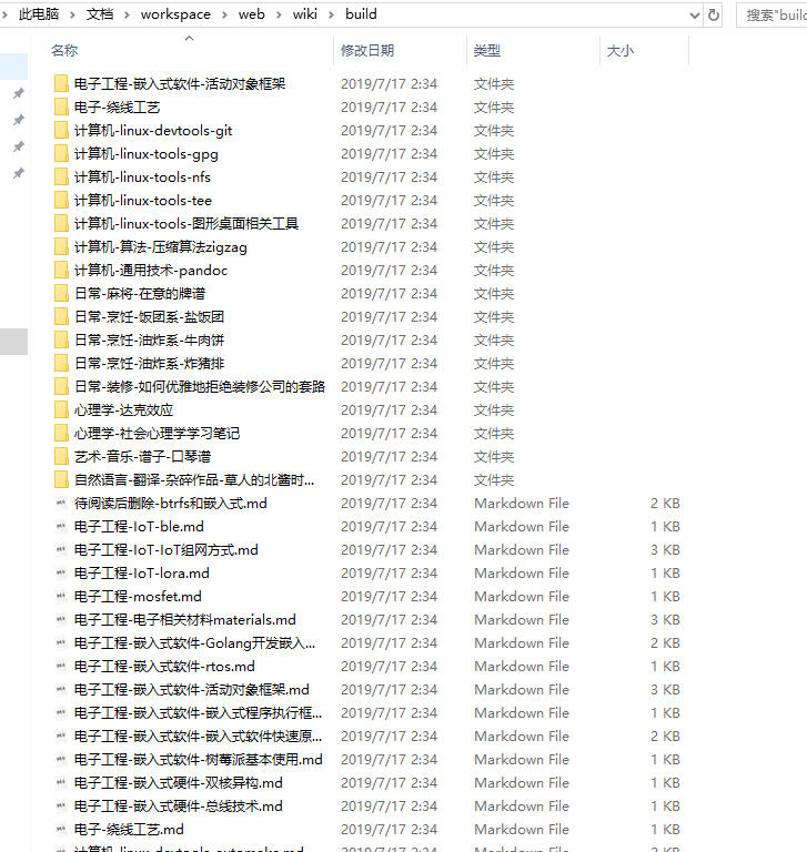 纠结了很长一段时间,总算是组了一套找到了贴合这些需求的方案:用Hexo+Wiki模板做渲染,用文件夹组织层次结构,用Typora做Markdown编辑器,Webhook+CI服务器做自动构建、部署。