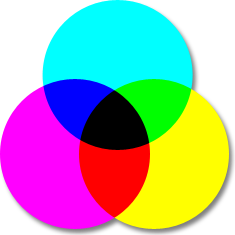 一种减法颜色模型,用于印刷。它的原理就是把青、品红、黄三层图片叠加起来。