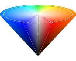 HSB也被称为HSV(Hue, Saturation, Value)。HSV模型被Alvy Ray Smith于1978提出,它是一种RGB模型的非线性变换。换言之,它并非被定义为基本色的简单的组合(相加、相减),而是数学上的变换。