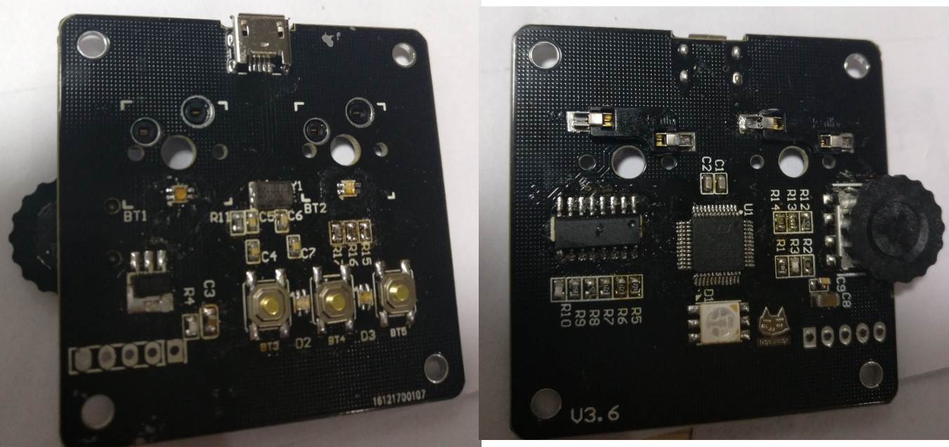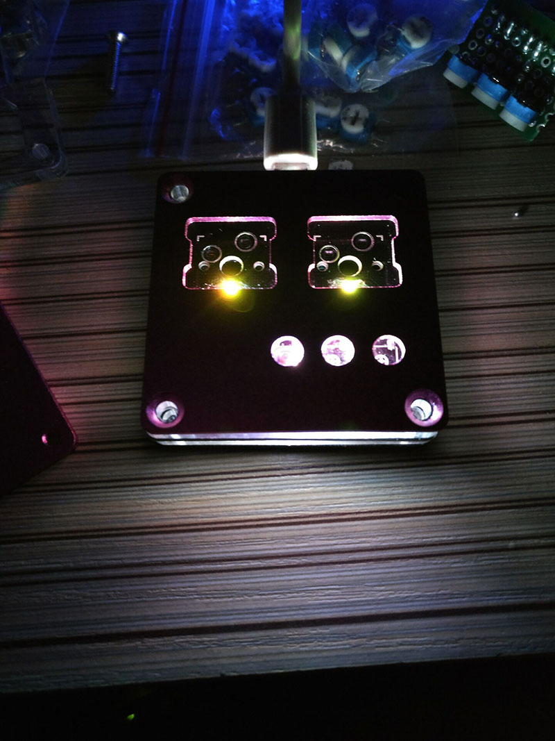打样的板子 左侧按键灯的白色比较纯正 而右侧按键灯的白色偏绿