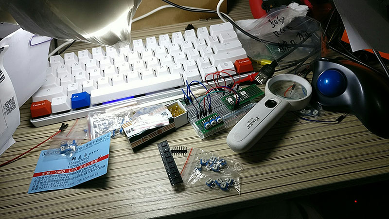 - 0805LED质量似乎也不是很稳定 成品里大概有超过1%的0805LED的蓝灯有问题 表现为用万用表二极管档测压降只有0.6v, 而正常的蓝灯在1.7这样