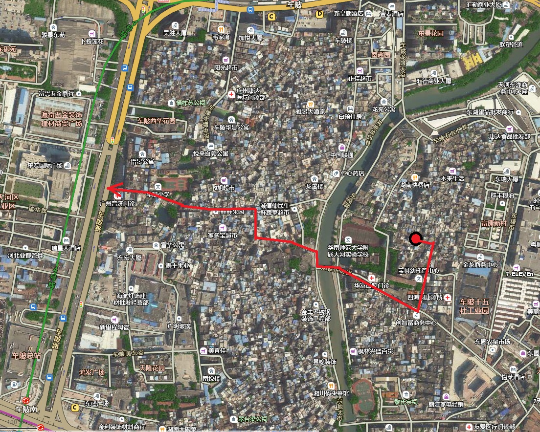 来一张上班时穿过城中村 大致路线图