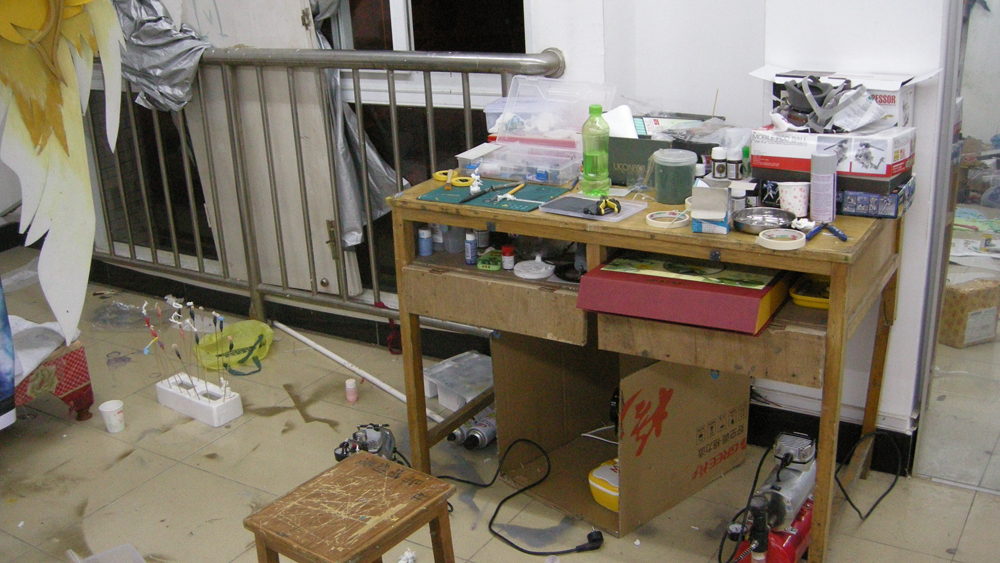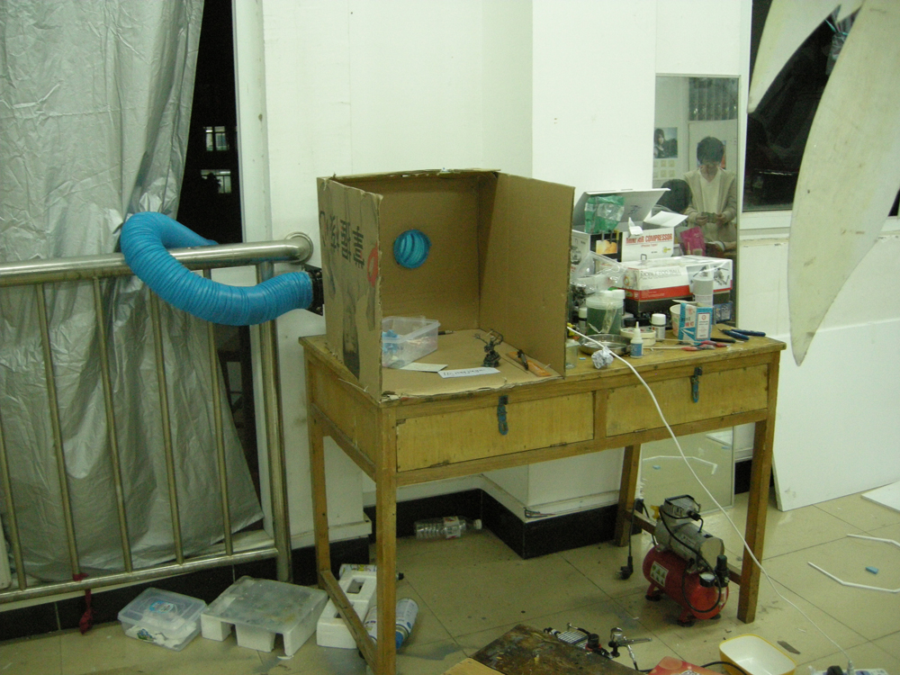 喷漆风箱, 是自己用纸箱搭的, 事实证明这玩意并不好用, 纤维到处是搞得漆面很不平整.