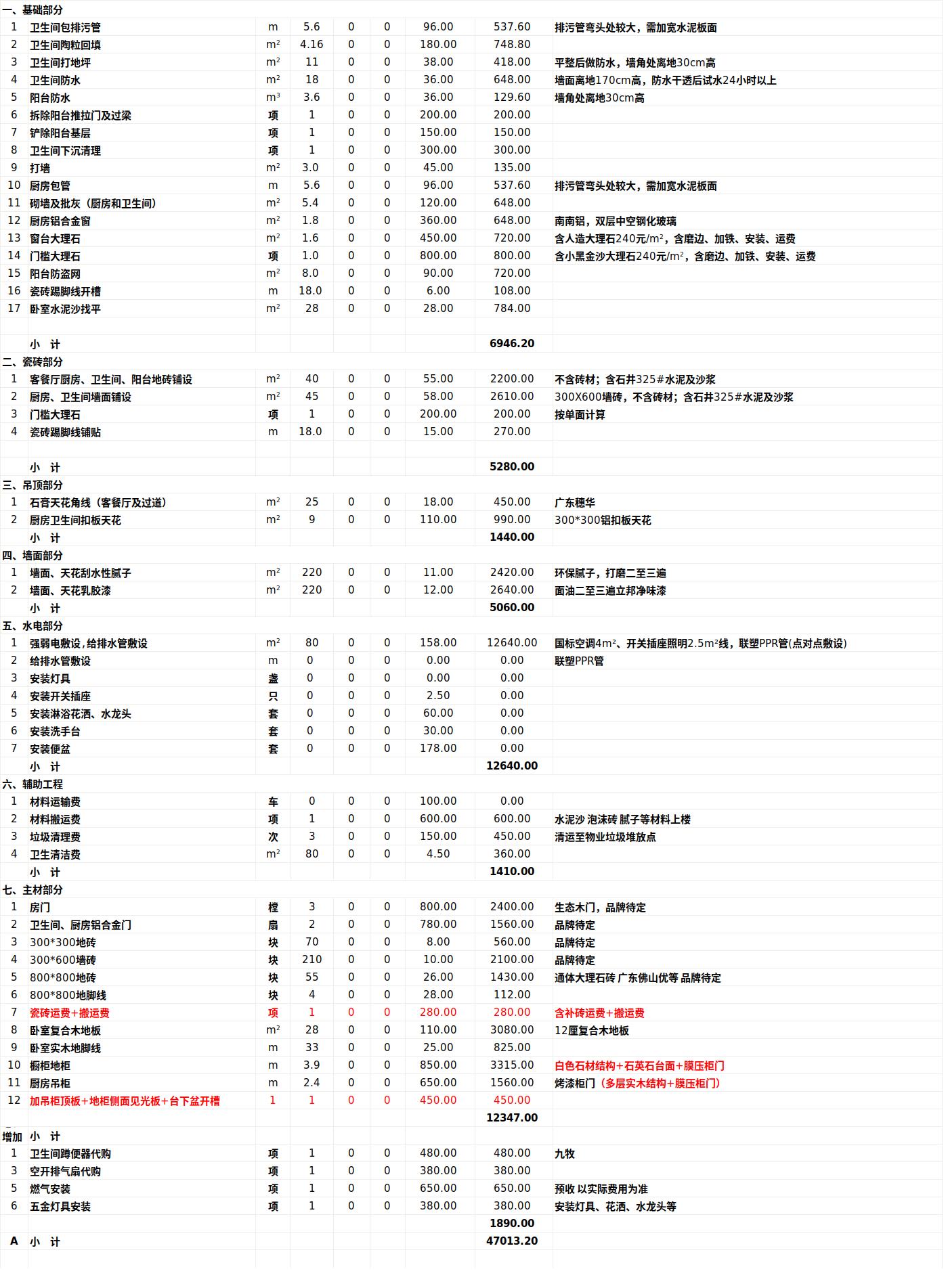 - 厨房柜、定制家具,如果选品牌的,单价高、收费名目多(材料倒一般),花钱也很容易
