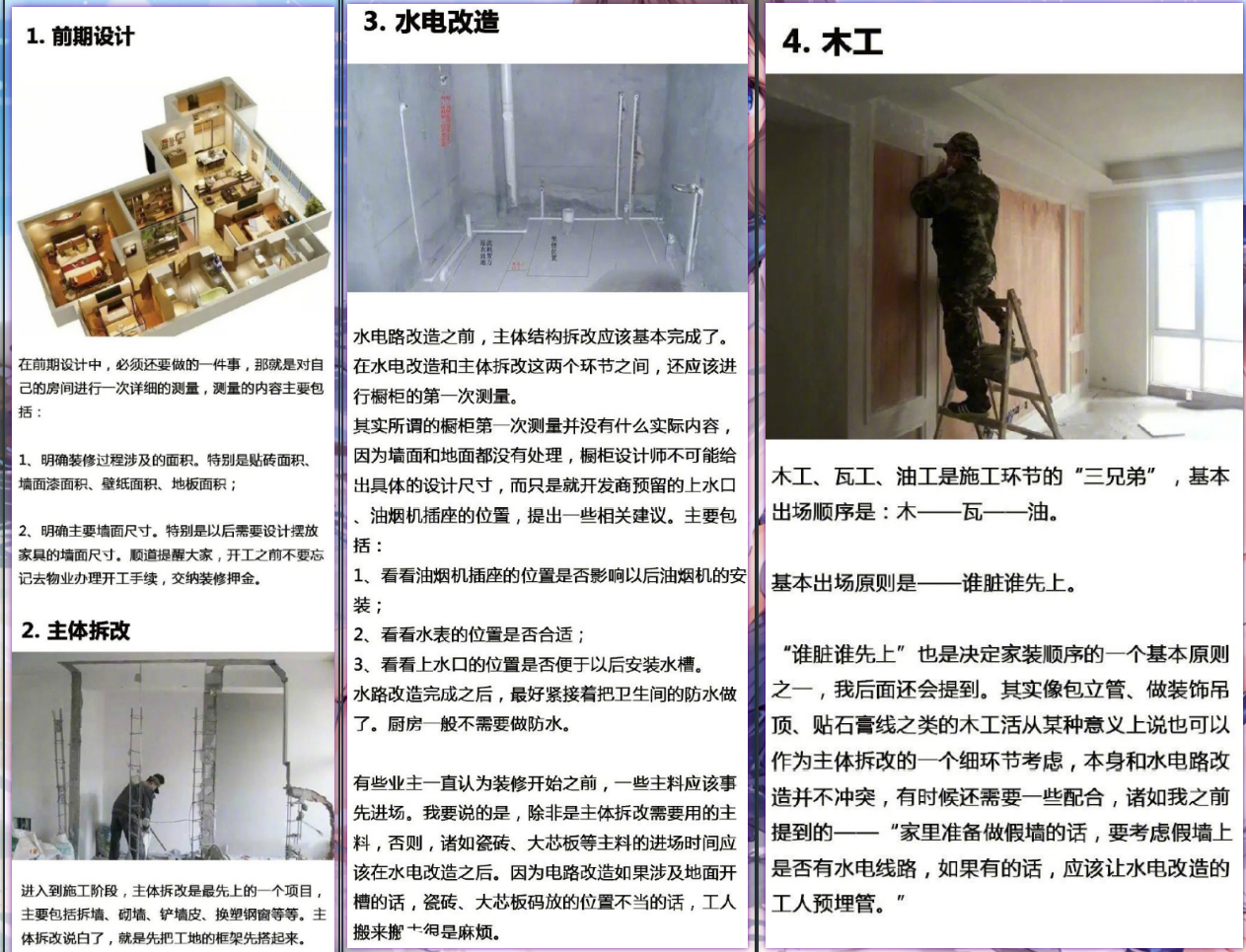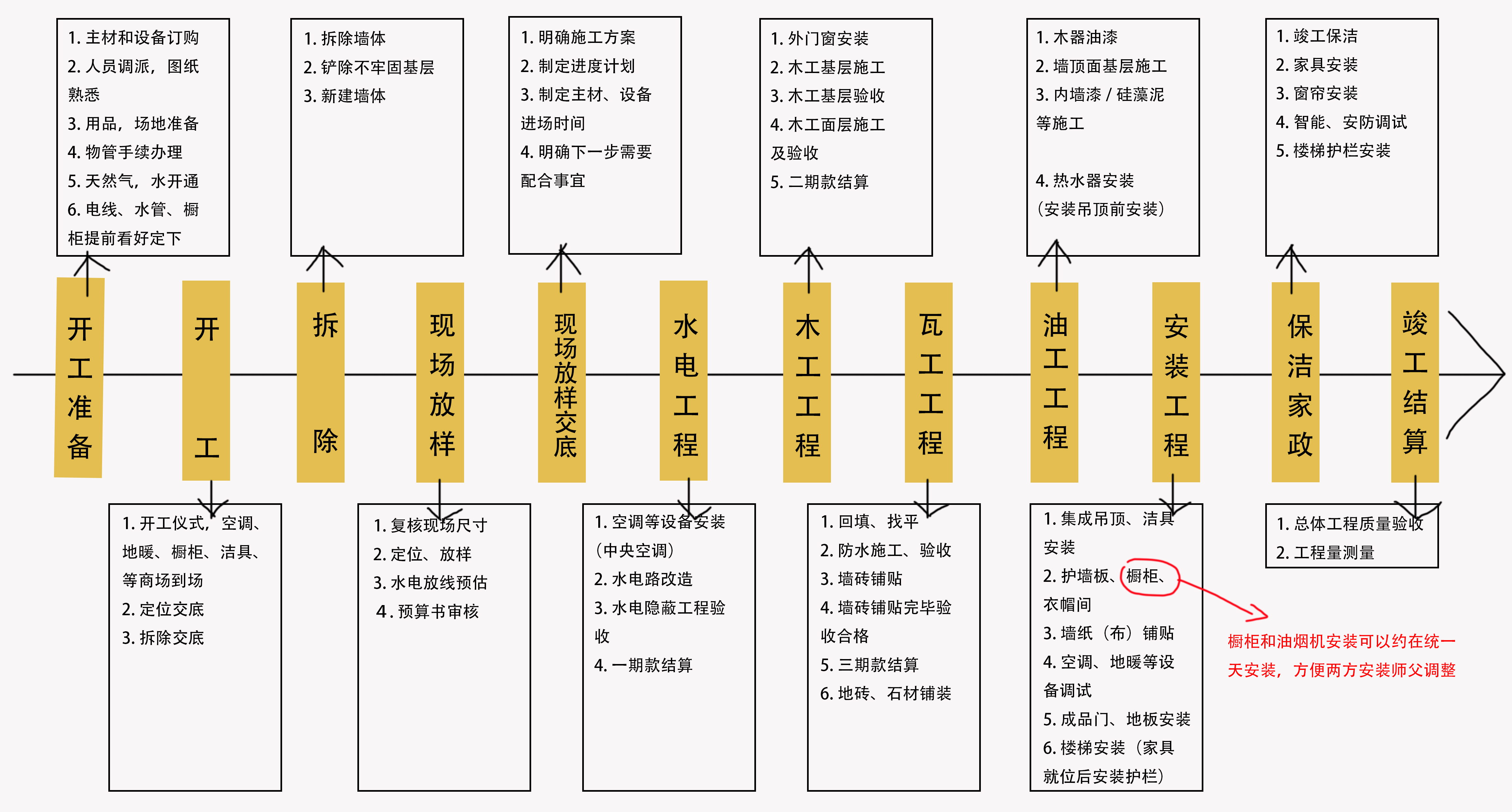 - 厨房的装修很复杂,但步骤还是跟着装修主要步骤走的,很清晰: