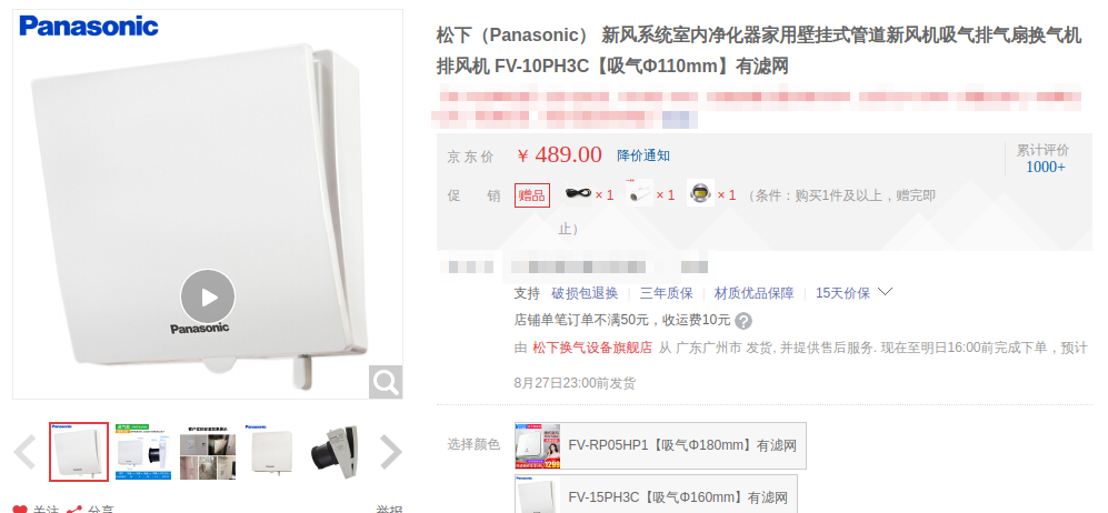 如果不想开窗,还有一种选择,换气扇,比如松下的FV-10PH3C: