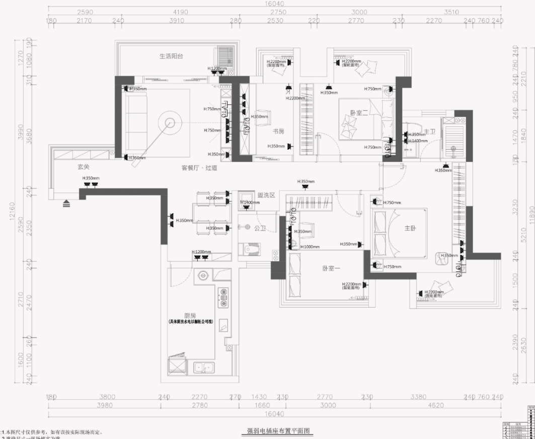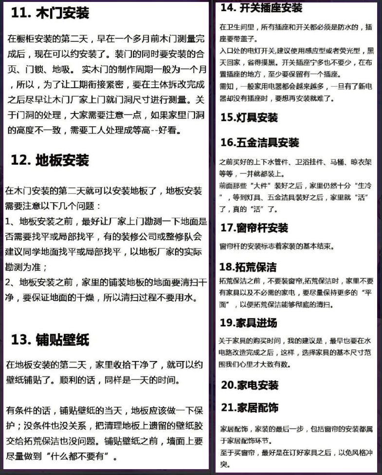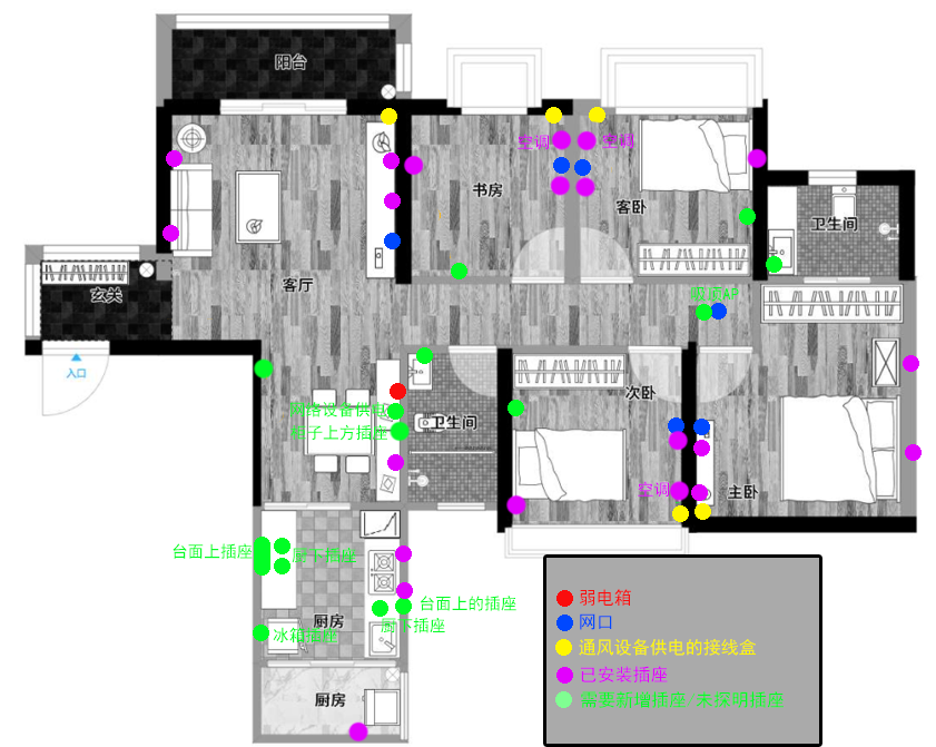 - 插座位置在施工前,请再三确认位置、数量是否合理,最好列一张表,哪个地方用到什么电器