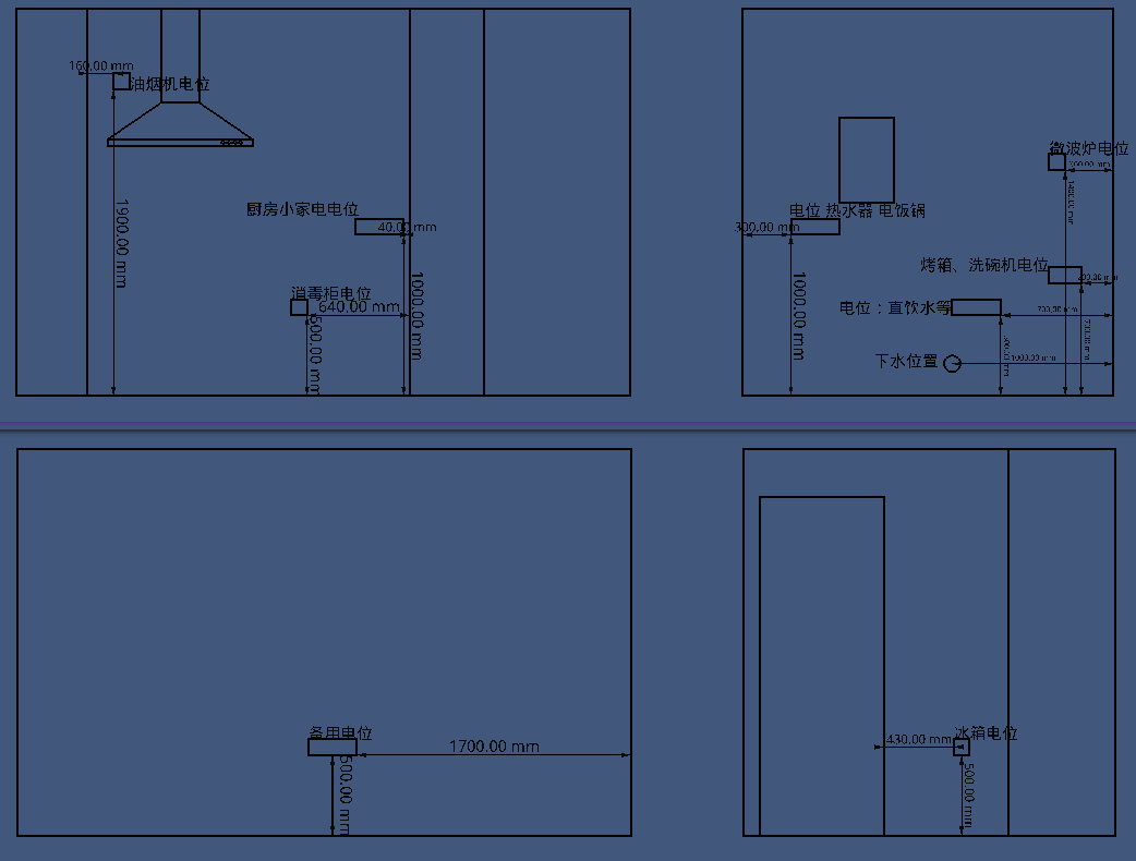 - 想根据橱柜的设计确定电的位置,方便做水电改造,所以需要个简单的橱柜布局设计