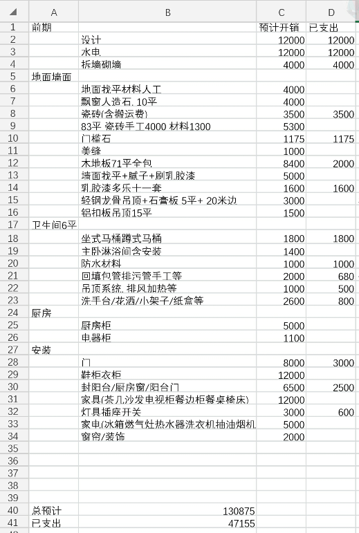 目前已经基本完成硬装,开销已经能算出来了: