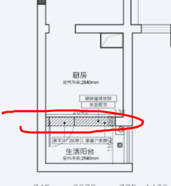 - 迷你尺寸的餐厅+厨房+生活阳台;餐厅,走道占去一部分空间,厨房,开发商给出的平面布置是个约3米的U型台面,实际用起来空间会比较局促,因为我喜欢自己做饭,这会是设计的重点