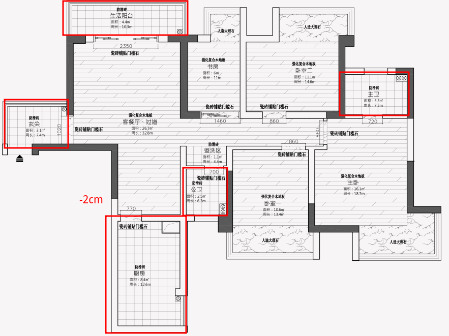 - 全屋复合木地板(约60平),考虑房间之间直接铺通(后面打消了这个念头,后面再说怎么回事)