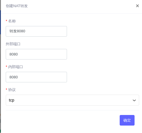 开放端口,本例是在VPS-NAT的后台web面板上配置端口转发,如果你的VPS有独立IP地址则可能需要配置防火墙入站规则: