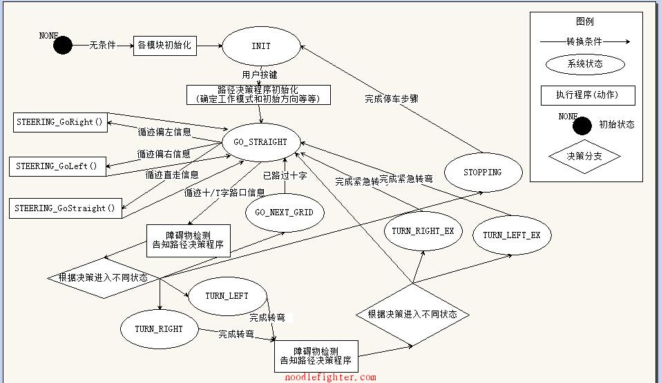 最重要的部分为“where_to_go.c”路径决策程序,以及“ctrl_system.c”控制主程序,使用一个平面状态机来完成功能。